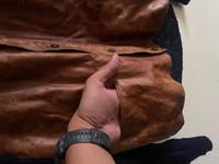 KINDLY PLEASE READ ALL THE DESCRIPTION BEFORE PURCHASING!!!.. DON'T HESITATE TO ASK ANY QUESTION :- Kindly see the actual measurements :- (All measurements were taken lying flat) Actual size Manual Measurement (approximately) : UNDERARM TO UNDERARM :- 20 inches LENGTH :- 27 inches SHOULDER TO SHOULDER :- 17 inches SLEEVE LENGTH :- 30 inches NECK SEAM TO CUFF : 37 inches TAGGED SIZE :- VI MATERIALS : Leather /Polyester MADE IN :- Italy Condition: good overall condition for vintage item Kindly see all pictures Thank you so much for your visit Shipping :- DHL express shipping 3-7 working day Etc: Don't Worry About Customs Tax or Fees. I usually Declare all Items as 'Gift' & Declare Value of Item Lower than Original Price. All Items are Sold "AS IS" so Please be Sure to Read The Entire Description and Look at All The Pictures. Any Question and More Details Please Don't Hesitate to Contact Me. ATTENTION : Please pay close attention to measurements provided. Do not rely on tag size as pre-worn items may have been altered, stretched or shrunk & vintage sizes do not directly translate the modern sizes.The best way to ensure a correct fit is to compare our measurements with the measurements of a similar item that you know fits you well.Please enlarge the photos for clearer image. Code : N8 (576)