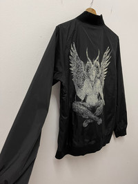 KINDLY PLEASE READ ALL THE DESCRIPTION BEFORE PURCHASING!!!.. DON'T HESITATE TO ASK ANY QUESTION :- Kindly see the actual measurements :- (All measurements were taken lying flat) Actual size Manual Measurement (approximately) : UNDERARM TO UNDERARM :- 22 inches LENGTH :- 29 inches SHOULDER TO SHOULDER :- SLEEVE LENGTH :- NECK SEAM TO CUFF : 32 inches Hem :- TAGGED SIZE :- L like M MATERIALS :- Cotton/Nylon MADE IN :- LA Condition: good overall condition for vintage item Kindly see all pictures Thank you so much for your visit Shipping :- DHL/FeDex express shipping 3-7 working day Etc: Don't Worry About Customs Tax or Fees. I usually Declare all Items as 'Gift' & Declare Value of Item Lower than Original Price. All Items are Sold "AS IS" so Please be Sure to Read The Entire Description and Look at All The Pictures. Any Question and More Details Please Don't Hesitate to Contact Me. ATTENTION : Please pay close attention to measurements provided. Do not rely on tag size as pre-worn items may have been altered, stretched or shrunk & vintage sizes do not directly translate the modern sizes.The best way to ensure a correct fit is to compare our measurements with the measurements of a similar item that you know fits you well.Please enlarge the photos for clearer image. NO REFUND/NO RETURN Code : N27