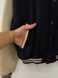 KINDLY PLEASE READ ALL THE DESCRIPTION BEFORE PURCHASING!!!.. DON'T HESITATE TO ASK ANY QUESTION :- Kindly see the actual measurements :- (All measurements were taken lying flat) Actual size Manual Measurement (approximately) : UNDERARM TO UNDERARM :- 24.5 inches LENGTH :- 24.5 inches SHOULDER TO SHOULDER :- 21 inches SLEEVE LENGTH :- 24 inches NECK SEAM TO CUFF : 31.5 inches Hem :- 17 inches TAGGED SIZE :- M MATERIALS : Wool/Leather MADE IN :- Korea Condition: good overall condition for vintage item Kindly see all pictures Thank you so much for your visit Shipping :- DHL express shipping 3-7 working day Etc: Don't Worry About Customs Tax or Fees. I usually Declare all Items as 'Gift' & Declare Value of Item Lower than Original Price. All Items are Sold "AS IS" so Please be Sure to Read The Entire Description and Look at All The Pictures. Any Question and More Details Please Don't Hesitate to Contact Me. ATTENTION : Please pay close attention to measurements provided. Do not rely on tag size as pre-worn items may have been altered, stretched or shrunk & vintage sizes do not directly translate the modern sizes.The best way to ensure a correct fit is to compare our measurements with the measurements of a similar item that you know fits you well.Please enlarge the photos for clearer image. NO REFUND/NO RETURN Code : NK1