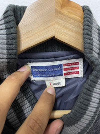KINDLY PLEASE READ ALL THE DESCRIPTION BEFORE PURCHASING!!!.. DON'T HESITATE TO ASK ANY QUESTION :- Kindly see the actual measurements :- (All measurements were taken lying flat) Actual size Manual Measurement (approximately) : UNDERARM TO UNDERARM :- 23 inches LENGTH :- 25 inches SHOULDER TO SHOULDER :- 18 inches SLEEVE LENGTH :- 23 inches NECK SEAM TO CUFF : 29 inches Hem :- 17 inches TAGGED SIZE :- L MATERIALS :- Cotton/polyester MADE IN :- Condition: good overall condition for vintage item Kindly see all pictures Thank you so much for your visit Shipping :- DHL express shipping 3-7 working day Etc: Don't Worry About Customs Tax or Fees. I usually Declare all Items as 'Gift' & Declare Value of Item Lower than Original Price. All Items are Sold "AS IS" so Please be Sure to Read The Entire Description and Look at All The Pictures. Any Question and More Details Please Don't Hesitate to Contact Me. ATTENTION : Please pay close attention to measurements provided. Do not rely on tag size as pre-worn items may have been altered, stretched or shrunk & vintage sizes do not directly translate the modern sizes.The best way to ensure a correct fit is to compare our measurements with the measurements of a similar item that you know fits you well.Please enlarge the photos for clearer image. NO REFUND/NO RETURN Code : N19