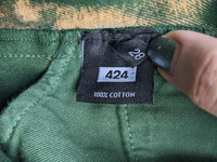 Made in collaboration with Armes, these beautiful emerald green jeans from 424 feature a unique hand bleached effect. Like camo, but better. AW18 Relaxed Fit Made in Los Angeles Feel free to send offers! If you like what you see, check out my other listings! I will be uploading more designer items as I cycle through my wardrobe. All items are shipped out within 3 days (unless otherwise noted) ALL SALES ARE FINAL