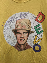 DEVO merch from 2012 featuring album art from Q: Are We Not Men? A: We Are Devo! Worn only a few times, has a pinhole by the hem in the front. Feel free to send offers! If you like what you see, check out my other listings! I will be uploading more designer items as I cycle through my wardrobe. All items are shipped out within 3 days (unless otherwise noted) ALL SALES ARE FINAL