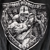 VINTAGE 90s 1990 RAIDERS NFL SKELETON BIG PRINT SHIRT IN TRIPLE A TAG . SIZE XL ARMPIT 23 INCH LENGTH 29 INCH . MADE IN MEXICO 100 COTTON DOUBLE STITCHES NO SIDE SEAMS CONDITION 9/10 . NO RIPS NO HOLES . Weight: 0.254kg Ref: 0148