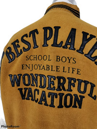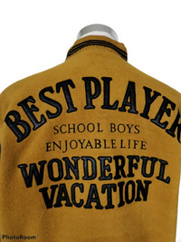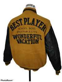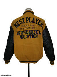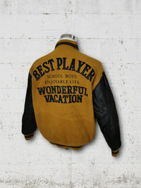 Vintage Best Player Wool Embroided Spell Out Logo. Leather Sleeve and come with snap button. School Boys Enjoyable Life. Wonderful Vacation. Michel Earet Size XL Armpit 25 inch Length 28 inch Sleeve 24 inch Shoulder 22 inch Hem 21 inch Condition 8.5/10 No rips No holes Some defect at the interior quilted layer. Minor defect at front jacket. Weight: 1.25kg Ref: 0225 #rare #varsity #vintagevarsity