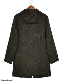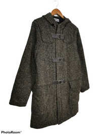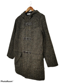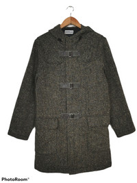 Vintage MORGAN HOMME Wool Long Jacket with Hoodie Made in JAPAN Size M Armpit 20 inch Length 35 inch Sleeve 24 inch Shoulder 18 inch Hem 20 inch Condition 8.5/10 No rips No holes Crack on leather strap Weight: 0.920kg Ref: 0205