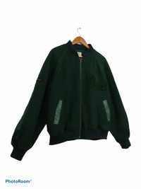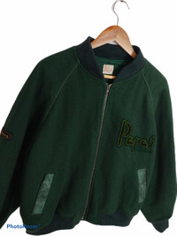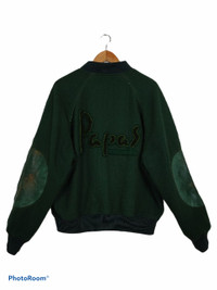 Vintage PAPAS Spell Out Varsity Snap Button Size L . Size in tag M but can fit L Condition 8.5/10 Minor crack at the bone at back of jacket Minor defect at the front leather pocket Armpit 25 inch Length 28 inch Sleeve 25 inch Shoulder 21 inch Hem 22 inch Weight: 1.28kg Ref: 0222