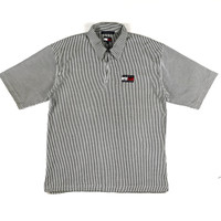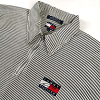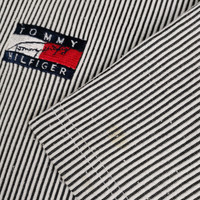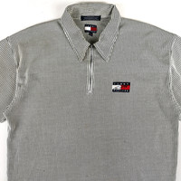 Vintage Tommy Hilfiger Embroided Logo and Spell Out in Stripe Half Zip Shirt . SIZE L . MEASUREMENT ARMPIT 23 INCH LENGTH 30 INCH SLEEVE LENGTH 11 INCH SHOULDER 22 INCH HEM 23 INCH . CONDITION 8.5/10 NO RIPS NO HOLES Minor flaws at the back sleeves. Missing Zip Pad. . PLEASE AWARE THAT USED ITEM MIGHT HAVE SIGN OF WEAR. . PLEASE LEAVE YOUR CONTACT NUMBER ONCE PURCHASE. FOR SHIPPING PURPOSE . Weight: 0.305kg #0002