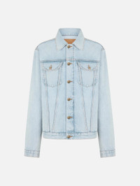 Women’s ice-blue denim jacket BLAZE Milano reimagines the classic denim jacket with the new Nariida Amrock model in an ice-blue wash. Defined by contrast stitching and the maison’s new antiqued-gold buttons featuring the raised seahorse logo, it’s a key piece designed to go anywhere with you. - Regular fit - Straight-point collar - Antique gold-tone buttons with embossed logo - Two chest slit pockets with button closure - Visible stitching 100% Cotton Made in Italy