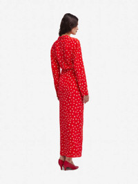 Women’s red silk shirt with white polka dots The Anabas Shirt returns for Resort 2026 in a painterly take on polka dots, featuring irregular spots set against a crab-red background. Crafted from silk for an elegant, effortless feel, it adds a creative twist to the season’s looks. It can also be worn as a total look with the coordinating Fox Pants or Konik Maxi Skirt. - Regular fit - Straight-point collar - Tone-on-tone fabric-covered buttons - Chest pocket with embroidered logo 100% Silk Made in Italy