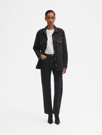 Women’s black denim shirt Timeless and versatile, the Clapotis Berber Shirt by BLAZE Milano is designed to transcend seasons and occasions. Crafted from black denim with a crisp, cool handfeel, it can be styled as a shirt or left open, playing with layering to create looks with a strong personality. Golden buttons add a ladylike note, striking the perfect balance between femininity and contemporary attitude. - Designed for a relaxed fit - Straight-point collar - Gold-tone loden-effect buttons - Smiley pocket on the chest - Tone-on-tone embroidered logo on the chest 100% Cotton Made in Italy