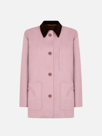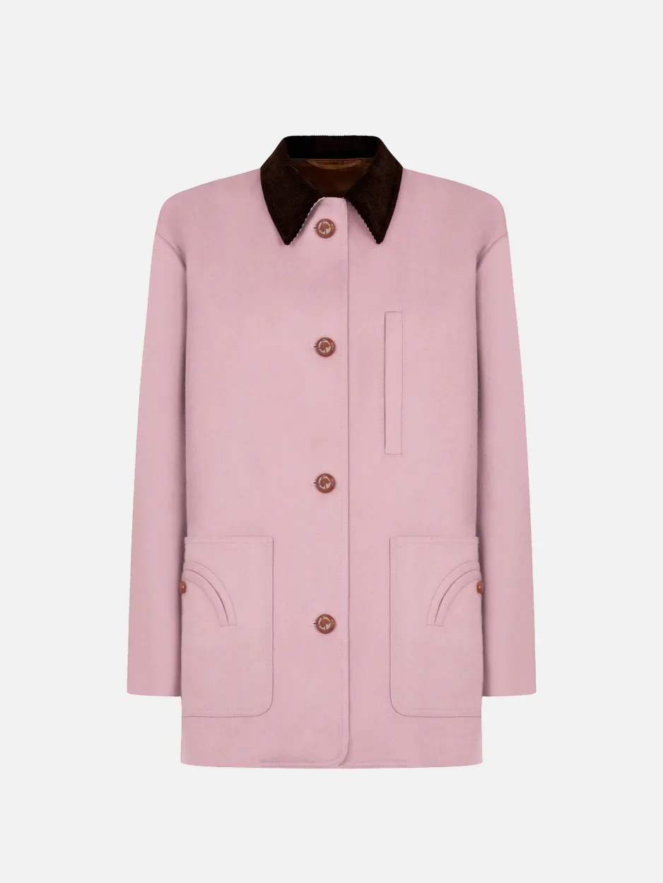 Women’s pink wool and cashmere jacket with double pockets A slim-fitting mid-length jacket in a wool/cashmere blend with a contrasting collar in chocolate-brown corduroy, it’s enhanced by classic BLAZE Milano details: two large Smiley pockets, a small breast pocket and glossy loden-effect buttons. - Contrasting chocolate-brown collar - Two large Smiley pockets - Small breast pocket - Glossy loden-effect buttons 94% Virgin Wool 6% Cashmere Lining: 100% Viscose Made in Italy