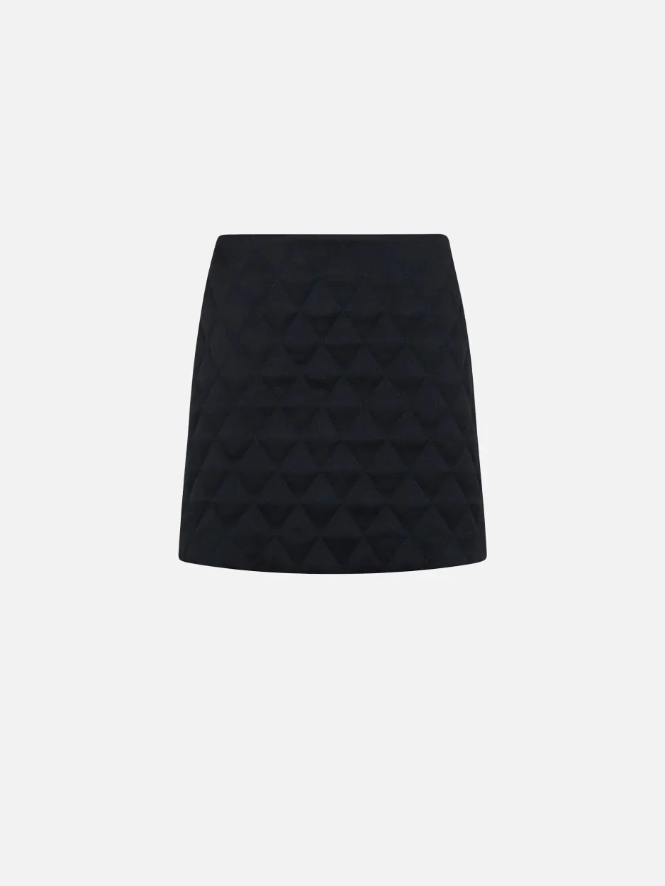 Dark navy quilted satin miniskirt The Coci Miniskirt in dark navy quilted satin blends structure and femininity in a graphic, modern silhouette. Its high waist and slim fit sharpen the lines, while the decorative Smiley Pocket introduces BLAZE Milano’s signature touch. A versatile piece for everyday styling or worn as a set with the matching Gliss Bolero. - Mini length - High-rise - Slim fit - Concealed zip fastening along back - Decorative back Smiley pocket - Blue navy lining with logo motif 52% Viscose 48% Acetate Lining: Viscose Made in Italy