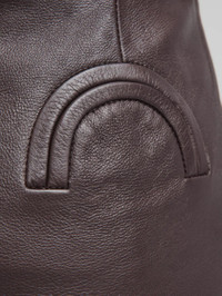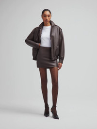 Mini skirt in brown leather This slim-fitting, high-waisted, mid-thigh-length mini skirt is a classic to pair with the Ares Charlie bomber, a silk shirt or an oversized sweater. - Mini length - Designed to be worn at the waist - Slim fit - Concealed zip fastening along back 100% Lamb leather Lining: 70% Viscose 30% Elastane Made in Italy