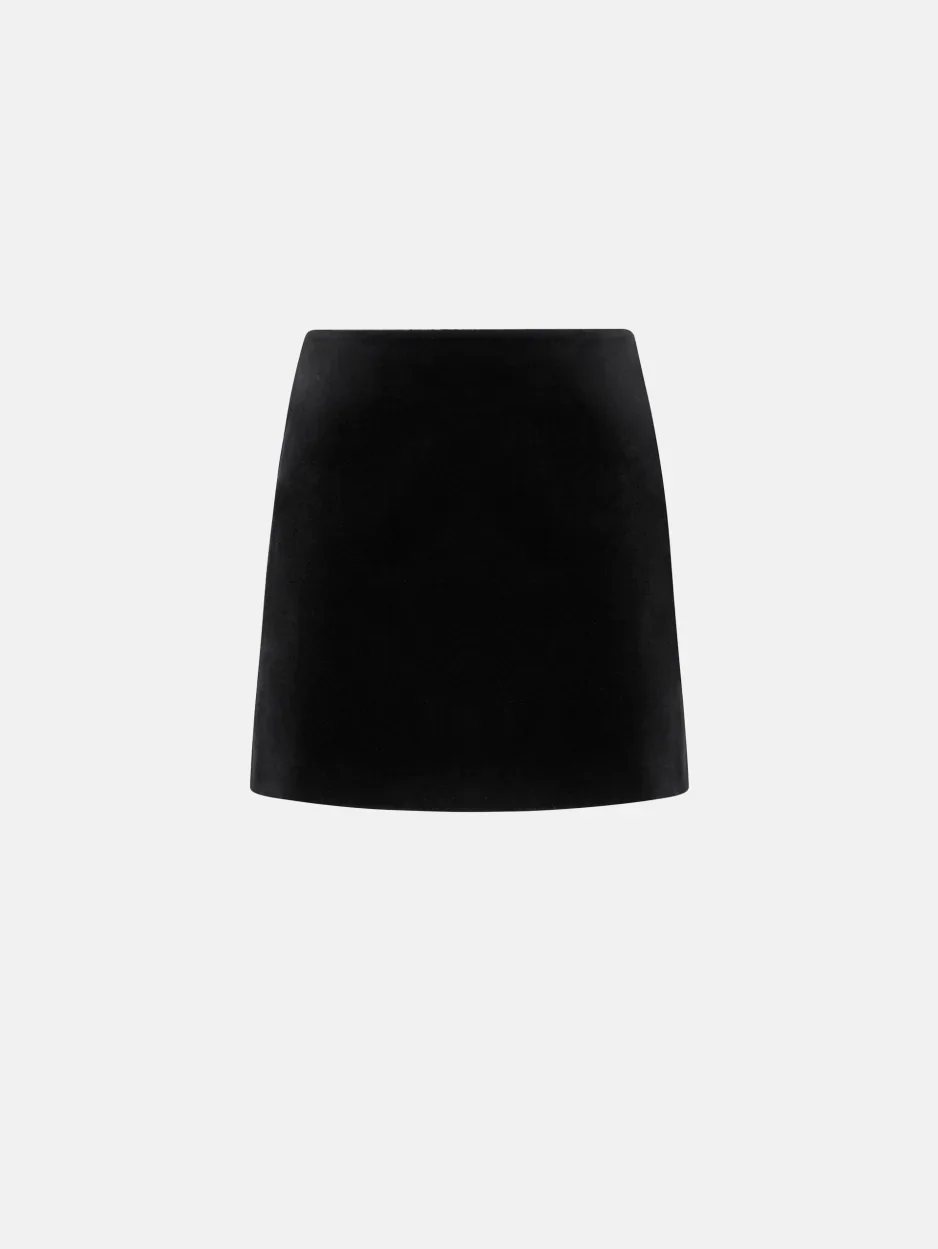 Mini skirt in black velvet A high-waisted figure-hugging velvet mini skirt. Hitting mid-thigh, it pairs perfectly with the matching blazer. - Mini length - Designed to be worn at the waist - Slim fit - Concealed zip fastening along back 100% Cotton Lining: Viscose Made in Italy