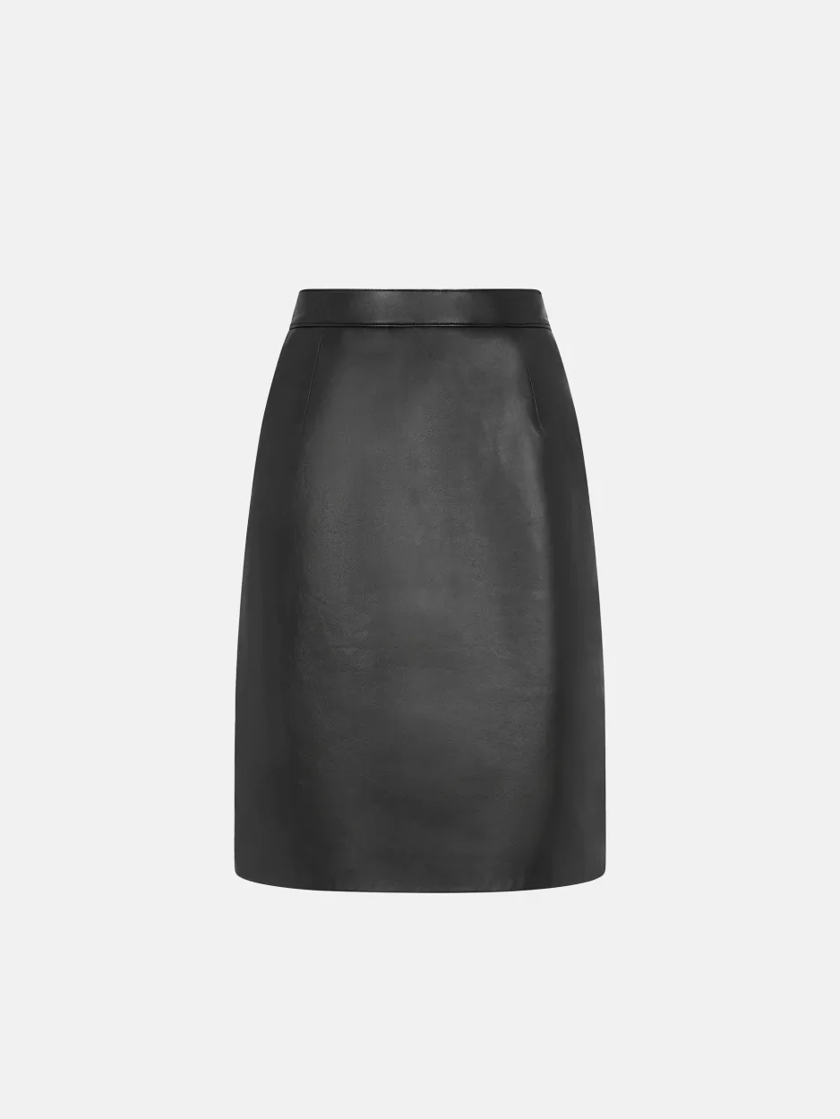 Black leather pencil skirt A high-waisted, body-hugging skirt in supple black nappa. In back, it has a hidden zip closure and a small Smiley pocket. - Straight pencil silhouette - Designed to be worn at the waist - Slim fit - Concealed zip fastening along back 100% Lamb leather Linings: 100% Viscose Made in Italy