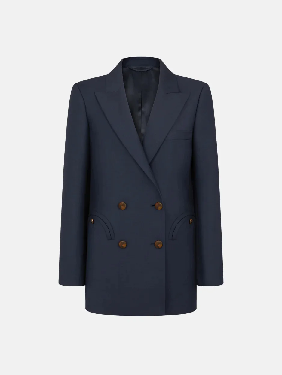 Double-breasted wool and mohair navy blazer