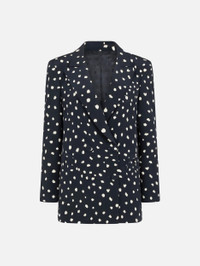 Double-breasted polka-dot silk navy blazer A classic must-have for any wardrobe, eminently wearable and versatile. The slightly padded shoulders, peak lapels and clean lines flatter and elongate the silhouette. - Double-breasted - Tailored for a straight cut through the waist - Lightly padded shoulders - Peak lapels - External Smiley pockets and four internal welt pockets 100% Silk Lining: Viscose Made in Italy