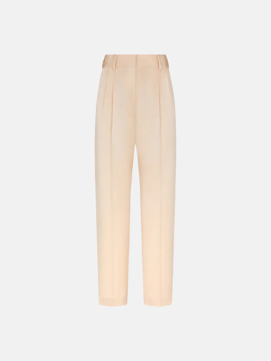 Pleated straight-leg satin ivory