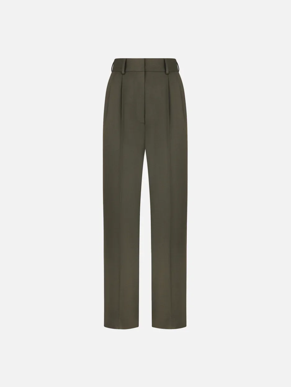 Women’s straight-leg pleated trousers in grey-green wool and mohair The Nahalin Green Fox Pants embody the perfect balance of tailoring elegance and practicality. A high-rise waist, pleats, and a front crease define this BLAZE Milano classic, designed to be paired with the matching Everyday Blazer in grey-green wool and mohair. - High-rise - Tailored straight-leg cut - Front pleats - Front crease - Concealed zip and hook fastening - Belt loops - Decorative back Smiley pocket - Dark chocolate lining with logo motif 72% Virgin wool 28% Mohair Lining: Viscose Made in Italy