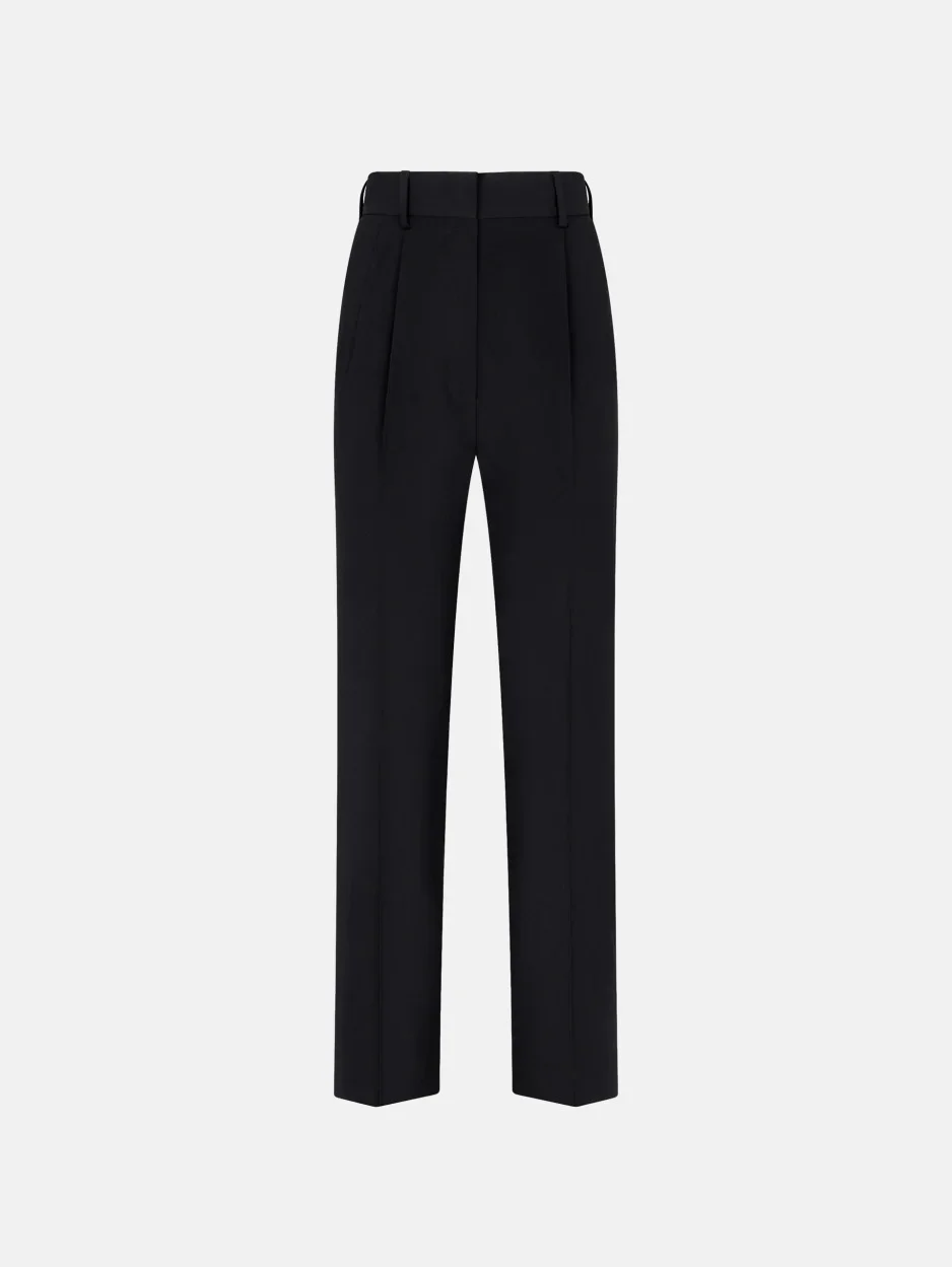 Pleated straight-leg wool black pants