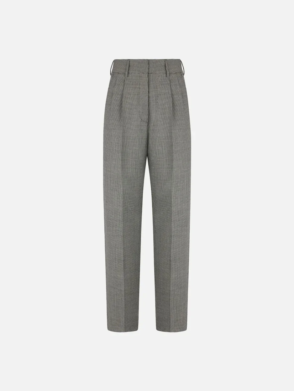 Women’s straight-leg wool trousers with pleats in black-and-white houndstooth Crafted in wool with a black-and-white houndstooth pattern, the Fox Pants are a formalwear classic—perfect worn with the coordinating Charmer Blazer or styled separately with the season’s knitwear. - High-rise - Straight-leg cut - Front pleats - Front crease - Concealed zip and hook fastening - Belt loops - Decorative back Smiley pocket - Malt lining with logo motif 100% Virgin wool Lining: Viscose Made in Italy