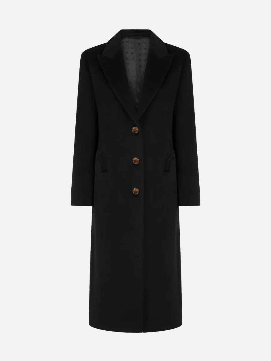 Women’s single-breasted coat in black wool and cashmere An elegant staple in the modern wardrobe, the Joyme Heck Coat in black offers timeless refinement with a contemporary edge. Tailored in a soft wool and cashmere blend, it features a sharp silhouette enhanced by lightly padded shoulders and a relaxed fit, making it the perfect balance between structure and ease. Ideal from day to night, this coat elevates any look with effortless sophistication. - Single-breasted - Slightly oversized fit - Padded shoulders - Peak lapels - Four-hole tortoiseshell-effect buttons engraved with the brand’s name - External Smiley pockets - Back vent - Black lining with logo motif 90% Virgin wool 10% Cashmere Lining: Viscose Made in Italy