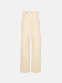 High-rise wide-leg beige jeans The Nariida Almond Java Jeans are cut in a relaxed, wide-leg silhouette with a subtle flare. Made from pure cotton denim in a soft almond off-white hue, they feature the brands signature Smiley design stitched on the back pockets for a distinctive finish. - High-rise, cut for a wide-leg fit - Belt loops - Concealed zip and button fastening - Back pockets stitched with the brands Smiley design 100% Cotton Made in Italy