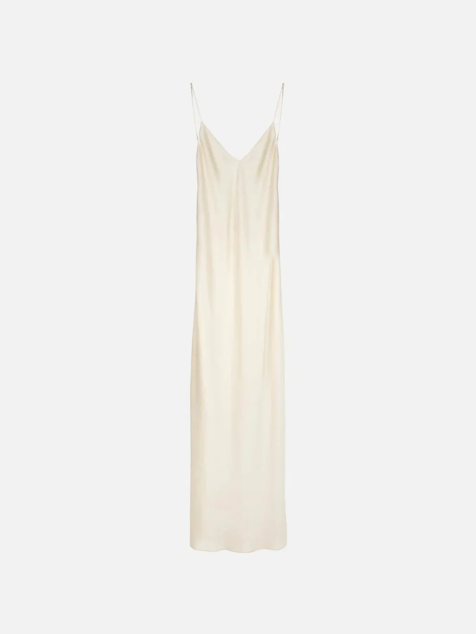 Slip dress in ivory satin BLAZE’s ivory slip dress is cut with a V-neck and a relaxed, figure-skimming fit that flares slightly at the hem. It’s an elegant choice for the minimalist bride. - Slim fit with open back - V-neck - Thin straps - Slips on 52% Viscose 48% Acetate Made in Italy