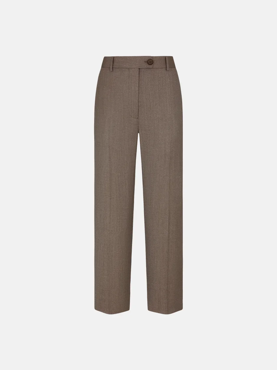 High-rise straight-leg virgin wool pants Straight-leg, high-waisted trousers with a Smiley pocket in the back. In dove grey, these versatile style works well with a variety of pieces, like the long-sleeved merino wool polo in a warm Marsala tone for an appealing autumnal look. - High waist - Tailored straight-leg cut - Front pleats - Belt loops - Concealed zip and hook fastening - Back Smiley pocket 100% Virgin Wool Lining: Viscose Made in Italy