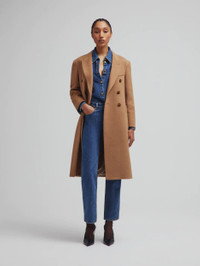 Women’s double-breasted coat in camel The ‘Mylius’ Overcoat is cut from the finest camel hair for a cozy, oversized fit that ensures easy layering over shirts and chunky sweaters. Buy once, love for a lifetime. - Designed for an oversized fit, with lightly padded shoulders - Camel hair felt - Camel coloured lining - Tortoiseshell-effect buttons - Peak lapels - Smiley outer pockets and four internal pockets 100% Camel Hair Lining: 100% Viscose Made in Italy