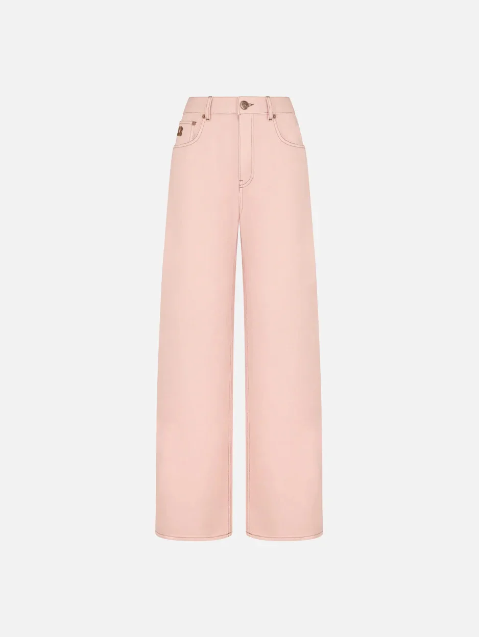 Women’s wide-leg pink denim trousers The Potoroo Jeans channel a fresh, contemporary attitude through their pastel pink hue and elongated wide-leg silhouette. Perfect for adding a touch of color to everyday casual looks. - High-rise - Relaxed fit - Wide-leg cut - Five pockets - Coin pocket with embroidered logo - Zip and antique gold-tone button with embossed logo fastening - Belt loops - Visible stitching 100% Cotton Made in Italy
