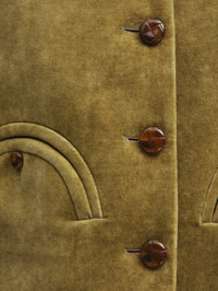 Women’s khaki green velvet bolero jacket The bon ton allure of the Shamo Bolero is elevated by the Jealousy Frog velvet, artisanally crafted to create a vintage effect and rich, irregular texture. Pair it with the matching Coci Mini Skirt for timeless charm. - Oversized fit, cropped design - Lightly padded shoulders - External Smiley pockets, two chest slit pockets and one internal pocket - Tortoiseshell-effect loden-effect buttons - Artisan-treated fabric - Dark chocolate lining with logo motif 100% Cotton Lining: Viscose Made in Italy