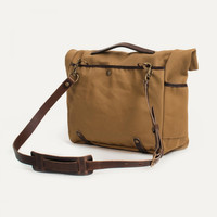 CANVAS SATCHEL BAG Designed in landscape format, the Gaston “Musette” offers plenty of storage capacity. It has two side pockets and a snap-fastening back pocket, perfect for magazines and more, and is ideal for carrying a laptop up to 15 inches, as well as all your essentials. Its adjustable leather shoulder strap makes it comfortable to carry either over the shoulder or across the body. The Gaston messenger bag is made from British Millerain cotton serge canvas (590 g/m²), renowned for being hard-wearing and weather-resistant. This high-quality canvas provides complete protection for your belongings, with a stylish weave that is soft to the touch. The vegetable-tanned leather handles, strap, and details add a touch of class while strengthening the bag, and will develop a wonderful patina over time. The interior features a zipped cotton pocket, dated and signed by the craftsman who made the bag. Size: L 35 x H 30 x W 10 cm Made in France. A typical working tool bag made from mixed materials: cotton canvas and vegetable tanned leather. The Gaston “Musette” gives you easy access to your belongings. MATERIALS In our workshop, we have selected an exceptional cotton canvas that is water-resistant and offers incomparable durability. The Gaston “Musette” is made from 18oz lick wax serge canvas from British Millerain. This 590 g/m² canvas stands out from the crowd, and with its super-close weave that makes it exceptionally resistant to wear and stretching, it is the gold standard in leather goods and baggage. The dry wax, applied with great care, gives it a non-greasy feel and optimal protection against the weather, for guaranteed durability and comfort in an urban environment and on your travels. - Details in vegetable-tanned leather - Adjustable leather strap. - A leather handle making it comfortable to carry by hand. - Inside removable zippered cotton pocket. - One pocket at the back with button closure. - Embossed Bleu de Chauffe logo with a bronze sheen. SIZE External dimensions: Size : L 35 x H 30 x W 10 cm Internal dimensions of main compartment: L 35 x H 28 x W 10 cm (format for 13", 14" and 15" laptops) We recommend that you take the measurements of your computer to verify its compatibility