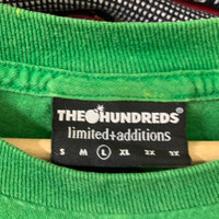 please do not expect the items is new or 100% perfect second hand/used product usually strech and stains details VTG THE HUNDREDS size tag: LARGE stitching: DOUBLE measurements: W21.5 L30 discoloration all over the tee / refer detail picture Vintage/used Product Sizing May Defer From Modern Sizing! So For The Best Desired Fit, Please Refer To The Measuremen Provided. Please Pay Close Attention To The Picture Provided To Judge The Condition Of The Piece! The colour may differ from actual item due to lightning and angle view during photo taken leave your name, address and your phone number for shipping reference no refund, no return, feel free to ask thanks