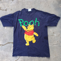 please read all details before purchased tshirt in good used condition,have flaw please do not expect the items is new or 100% perfect second hand/used product usually strech and stains details VINTAGE POOH stitching: DOUBLE size tag: LARGE measurements: W22 L 29 Shirt In Great Condition, No holes, No Stain Vintage Product Sizing May Defer From Modern Sizing! So For The Best Desired Fit, Please Refer To The Measuremen Provided. Please Pay Close Attention To The Picture Provided To Judge The Condition Of The Piece! all items will be shipped with tracking number.item will received within 14 to 21 working days leave your name, address and your phone number for shipping reference no refund, no return, feel free to ask thanks