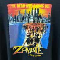 please do not expect the items is new or 100% perfect second hand/used product usually strech and stains details VTG MOVIE ZOMBIE size tag: LARGE stitching: DOUBLE measurements: W22.5 L26.5 used good condition / refer picture Vintage/used Product Sizing May Defer From Modern Sizing! So For The Best Desired Fit, Please Refer To The Measuremen Provided. Please Pay Close Attention To The Picture Provided To Judge The Condition Of The Piece! all items will be shipped using registered air mail leave your name, address and your phone number for shipping reference no refund, no return, feel free to ask thanks
