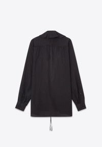 Blouse with low-cut jabot collar with drawstring closure. MORE DETAILS - 100% Silk Taffetas - Relaxed fit Gatherings back - Puffs sleeves with two buttons cuffs