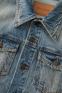 The classic trucker inspired slim fit jean jacket that has stood the test of time, the blank canvas for self-expression. This timeless jean jacket is designed in a slim fit with a centre button front 2 side pockets and 2 patch pockets. MORE DETAILS - The authentic worn in look, with faded and distressed effects and the authentic vintage hand feel with a timeless look. - Denim jacket slim fit – slim fit with a slightly shorter body - Button at centre front - Denim 100% - organic cotton - 4 outside pocket and 2 inside pockets