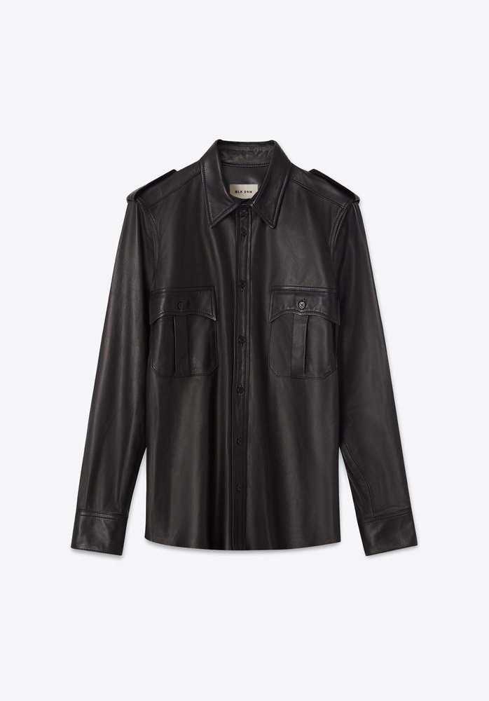 Safari shirt with modern 70s inspired collar in soft lamb leather. MORE DETAILS - 100% Soft lamb leather - Classic fit - Front button closure - Double button sleeve cuffs
