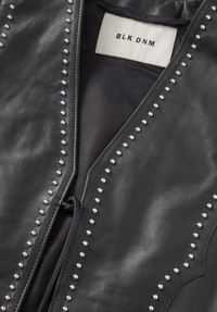 Leather motorcycle vest with decorative studs and drawstring closure. MORE DETAILS - 100% Calf Leather - Fully lined - Drawstring closure - Western cutlines - Studded details