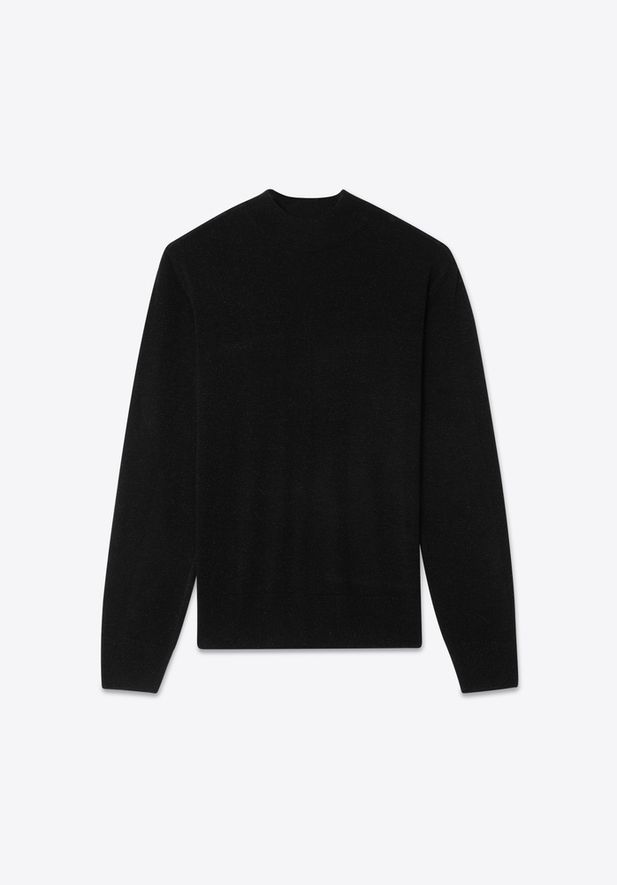 Black metallic mock neck sweater in ultra-fine wool and silk. MORE DETAILS - 89% Viscose 11% Metal - Fitted sweater - Mock neck - Ribbed trims.