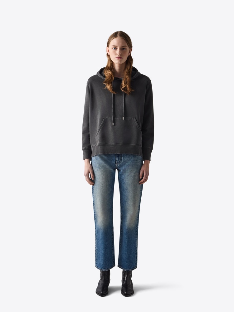 Classic hoodie regular fit with kangaroo pocket at front and BLK DNM rubberized print at center chest. MORE DETAILS - 100% Organic cotton - Distressed details at cuffs and waist band - Vintage wash and distressed details - Kangaroo pocket at front - BLK DNM rubberized print - Adjustable drawstring at hood - Regular length / hip length