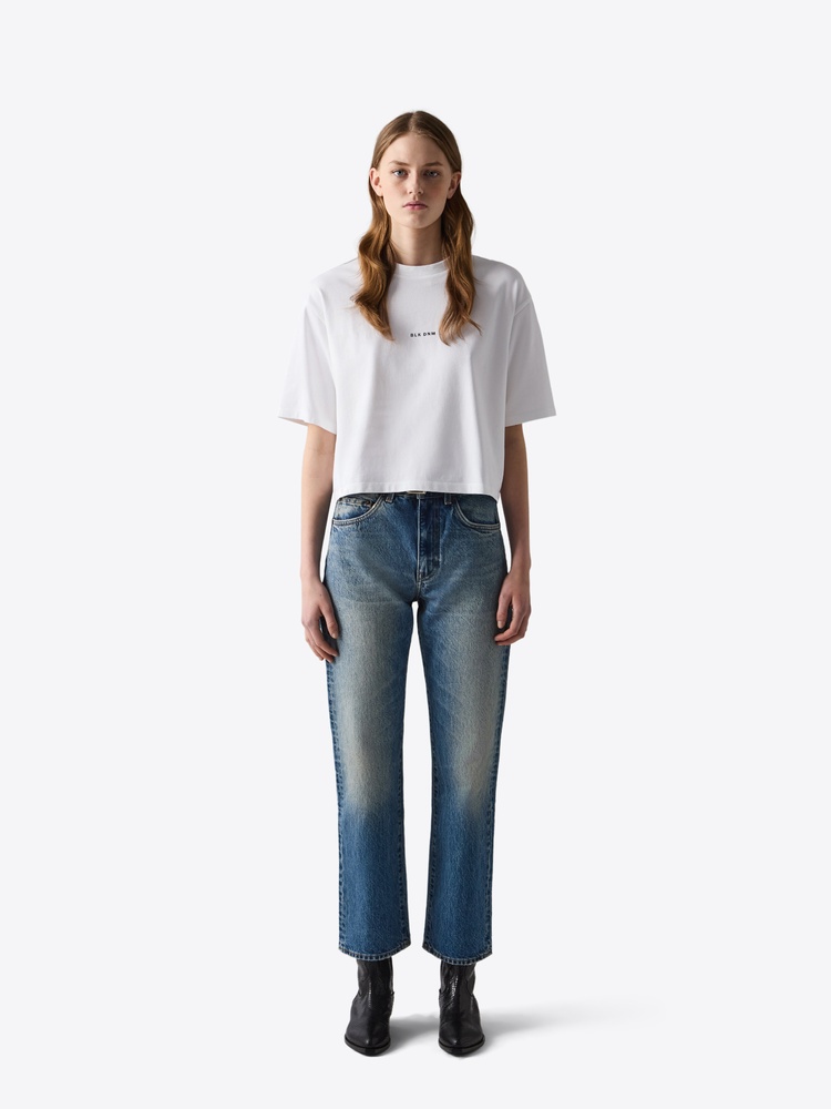 Cropped t-shirt with BLK DNM rubberized print at center chest MORE DETAILS - 100% Organic cotton - Boxy fit - Vintage wash and distressed details - BLK DNM rubberized print at center chest - Distressed details at sleeve and bottom hem