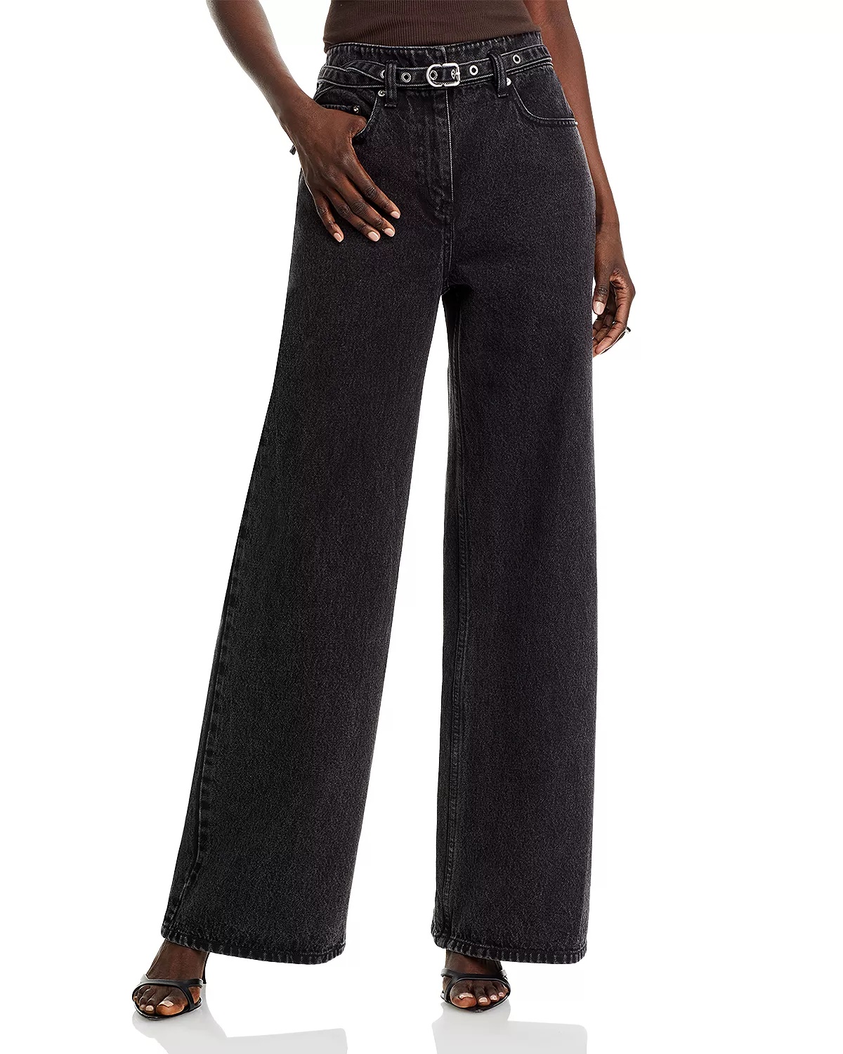 SIZE & FIT - Fits true to size, take your normal size - High rise: 12.5" - Long inseam: 33" - Leg opening: 18" - All measurements based on a size 2 - Model measurements: 5'10" height, 33.5" bust, 23.5" waist, 34.5" hips, wearing a size 2 PRODUCT DETAILS - Zip fly with button closure, five-pocket silhouette - Tonal stitching, black hardware, belt loops, attached belt - Wide-leg silhouette - Imported Web ID: 5100874 MATERIAL & CARE - 100% cotton - Dry clean