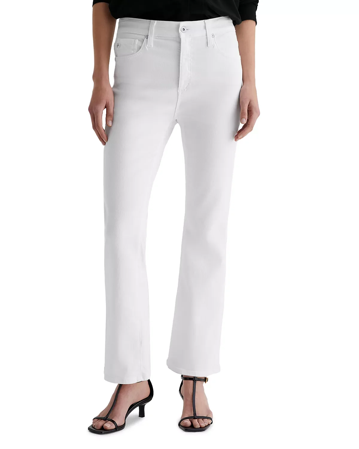 SIZE & FIT - Fits true to size, order your normal size - Mid rise: 10" - Ankle inseam: 27" - Leg opening: 17" - All measurements based on a size 27 - Model measurements: 5'10" height, 33" bust, 25" waist, 35" hips, wearing a size 27 PRODUCT DETAILS - Zip fly with button closure, five-pocket silhouette - AG patch at back of waistband - Bootcut-leg silhouette - Raw hem on Iris, Forgotten, and Heat Wave - Imported Web ID: 5551743 MATERIAL & CARE - Heat Wave: 81% cotton/6% polyester/2% elastane/11% lyocell; Iris: 98% cotton/2% elastane; Gallery White: 93% cotton/5% polyester/2% elastane; Forgotten & 3 Years Berlin: 98% cotton/2% spandex; Alchemy: 87% cotton/10% polyester/3% elastane - Machine wash