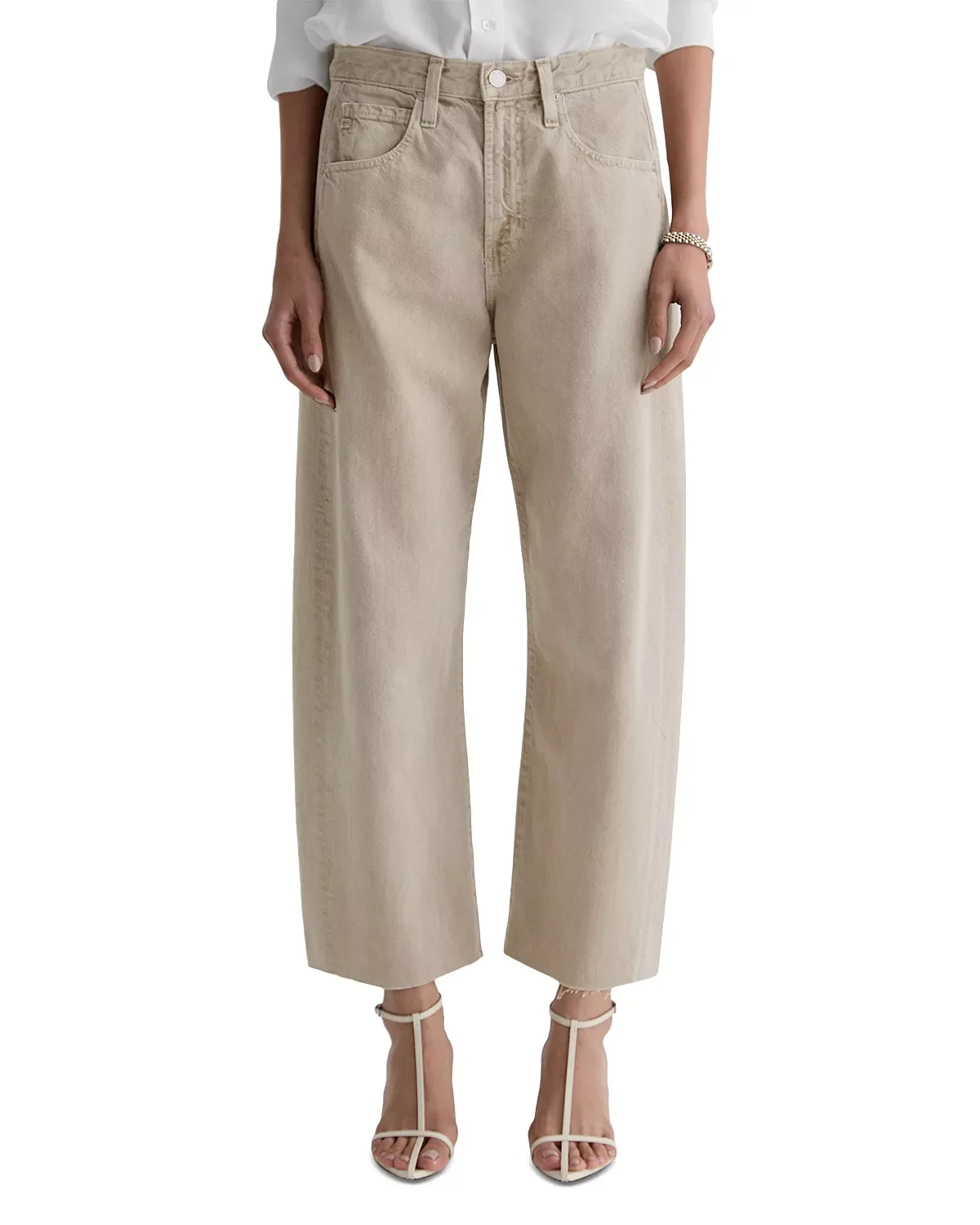 SIZE & FIT - Fits true to size, order your normal size - Rigid jeans: This non-stretch denim provides a structured fit and takes time to break in. It will become more comfortable with each wear! - High rise: 11.5" - Ankle inseam: 26.5" - Leg opening: 18.75" - All measurements based on a size 27 PRODUCT DETAILS - Zip fly with button closure, five-pocket silhouette - Tonal stitching, silver-tone hardware, belt loops - Colored wash - Barrel-leg silhouette, frayed hem - AG strives for environmental responsibility by using Ozone Technology and recycling heat to cut water and energy consumption and incorporating sustainable fibers such as Tencel lyocell and Modal® for a majority of their products. - Imported Web ID: 5984049 MATERIAL & CARE - 100% cotton - Machine wash