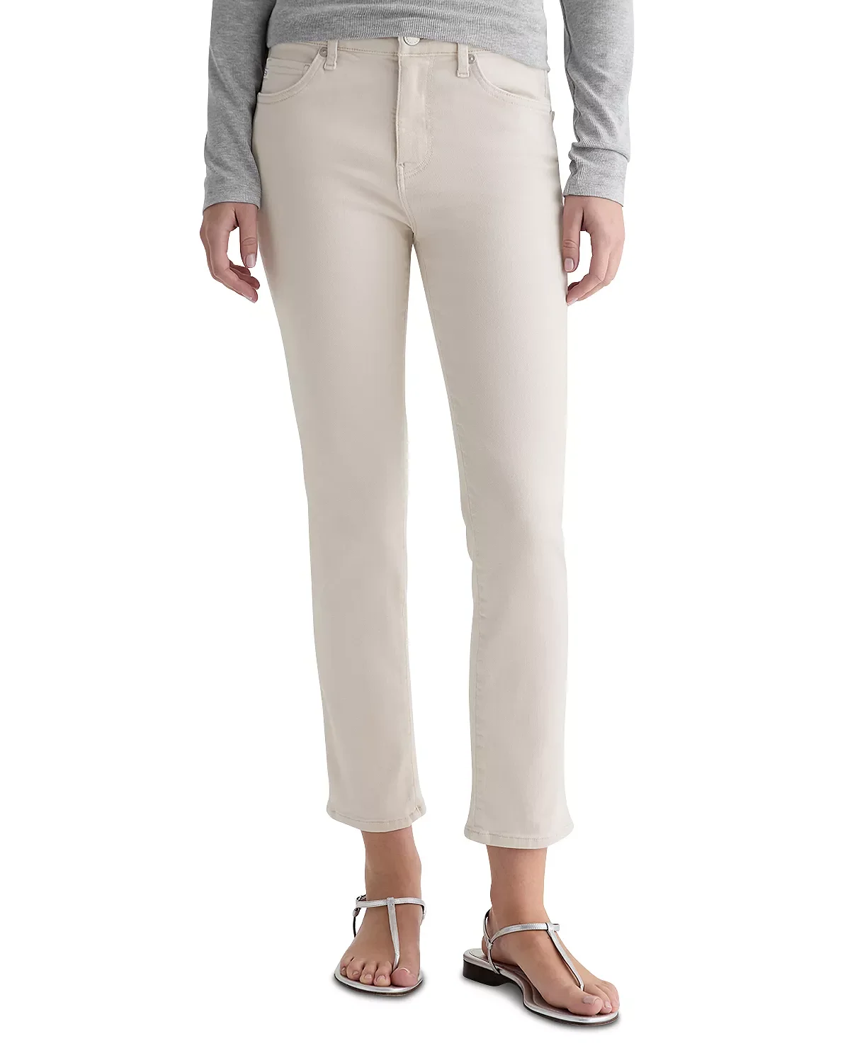 Mari Mid Rise Slim Straight Crop Jeans in Pumice