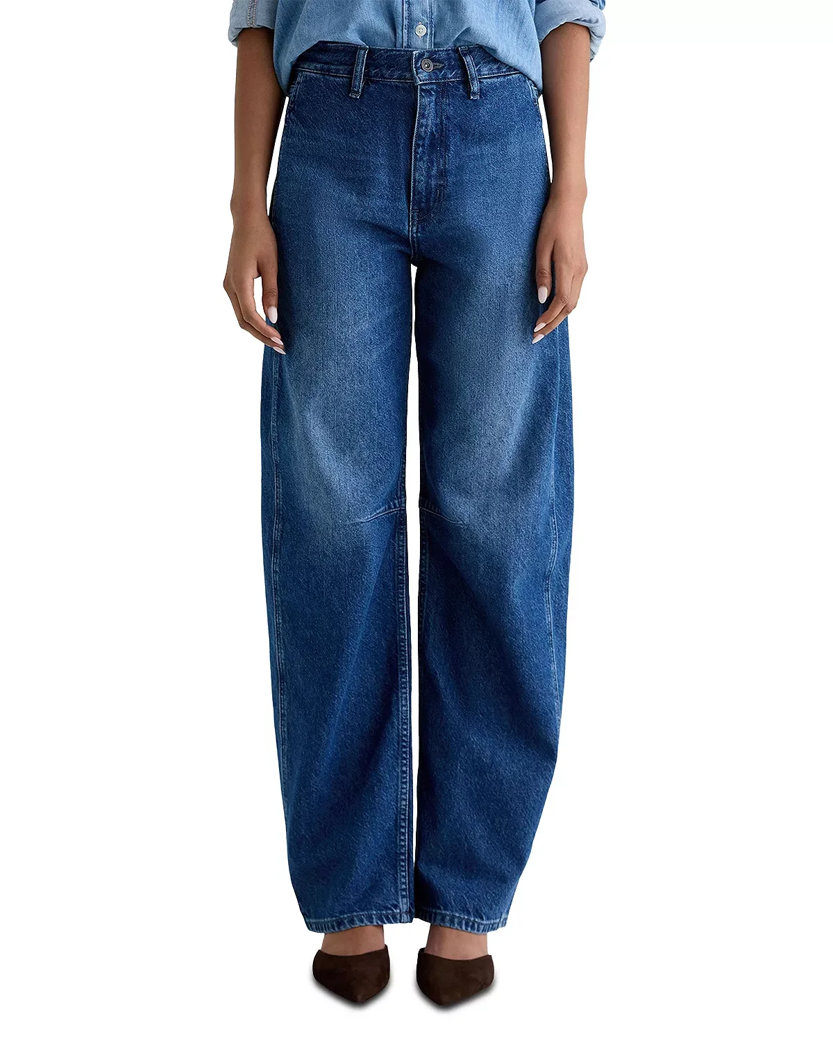 SIZE & FIT - Fits true to size, order your normal size - Rigid Jeans: this non-stretch denim provides a structured fit and takes time to break in. It will become more comfortable with each wear! - High rise: 11.5" - Long inseam: 32" - Leg opening: 18.75" PRODUCT DETAILS - Zip fly with button closure, five-pocket silhouette - Contrast stitching, silver-tone hardware, belt loops - Whiskered, faded - Wide-leg silhouette - Made in Turkey Web ID: 5770070 MATERIAL & CARE - 100% cotton - Machine wash