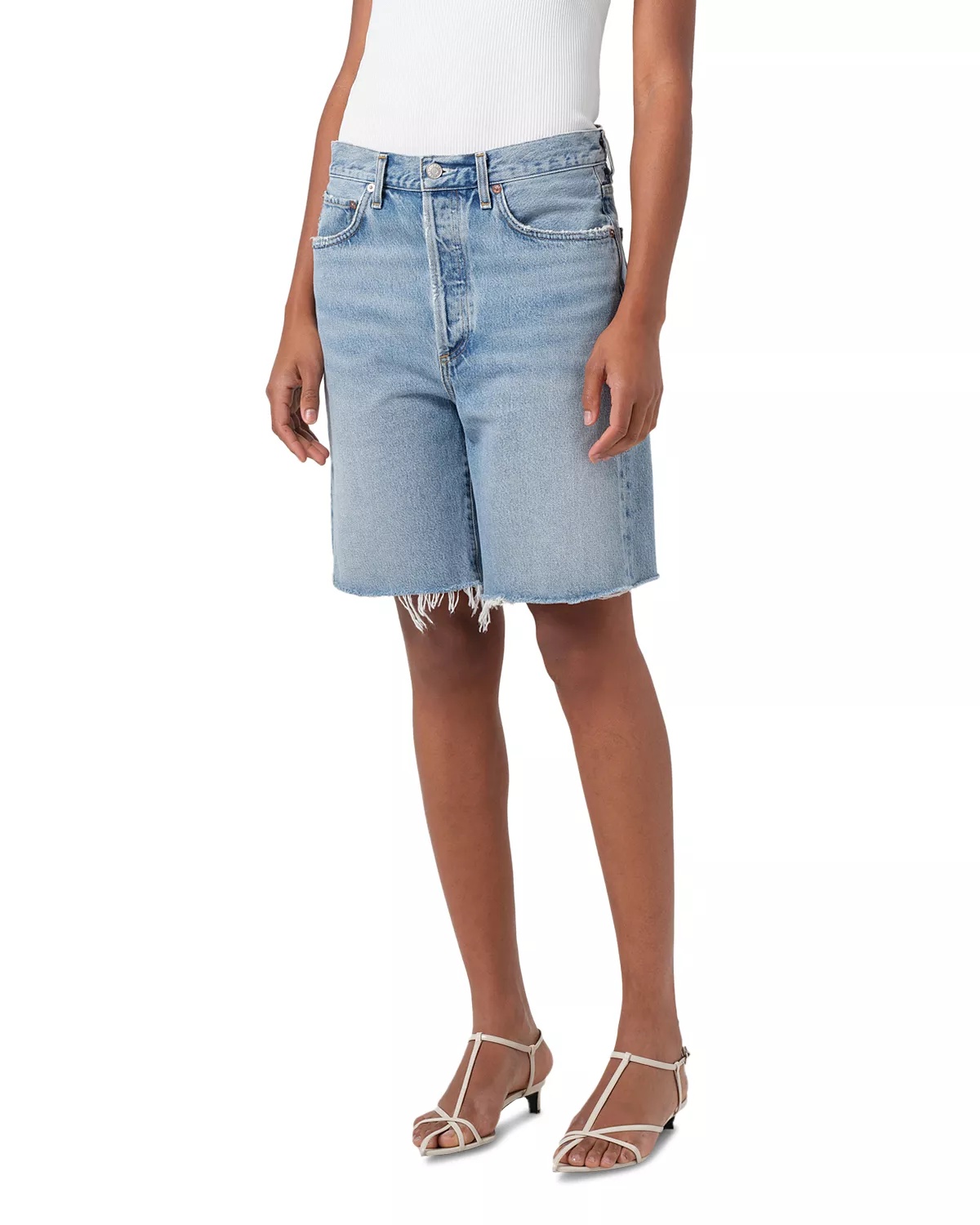 SIZE & FIT - Fits true to size, order your normal size - Designed for a relaxed fit - 12.75" front rise, 9" inseam, 20" leg opening, based on a size 27 - Model measurements: 5'10" height, 33" bust, 25" waist, 35" hips, wearing a size 27 PRODUCT DETAILS - Zip fly with button closure, belt loops - Five-pocket silhouette - Raw hems - Made in USA Web ID: 5416544 MATERIAL & CARE - 100% cotton - Machine wash