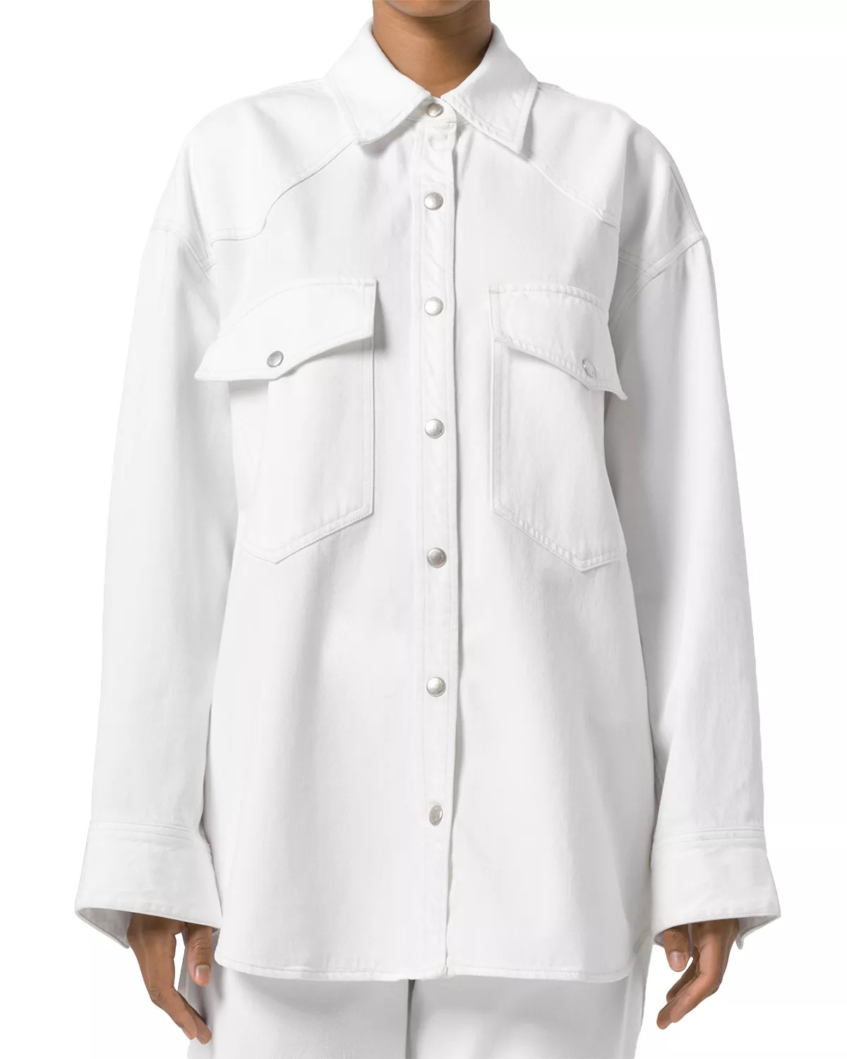 SIZE & FIT - Fits true to size, order your normal size - Designed for a relaxed fit - Model measurements: 5'10" height, 33" bust, 25" waist, 35" hips, wearing a size 27 PRODUCT DETAILS - Fold collar - Long sleeves with buttoned cuffs - Front button closures - Made in USA Web ID: 5423330 MATERIAL & CARE - 49% cotton/49% TENCEL™/2% spandex - Machine wash